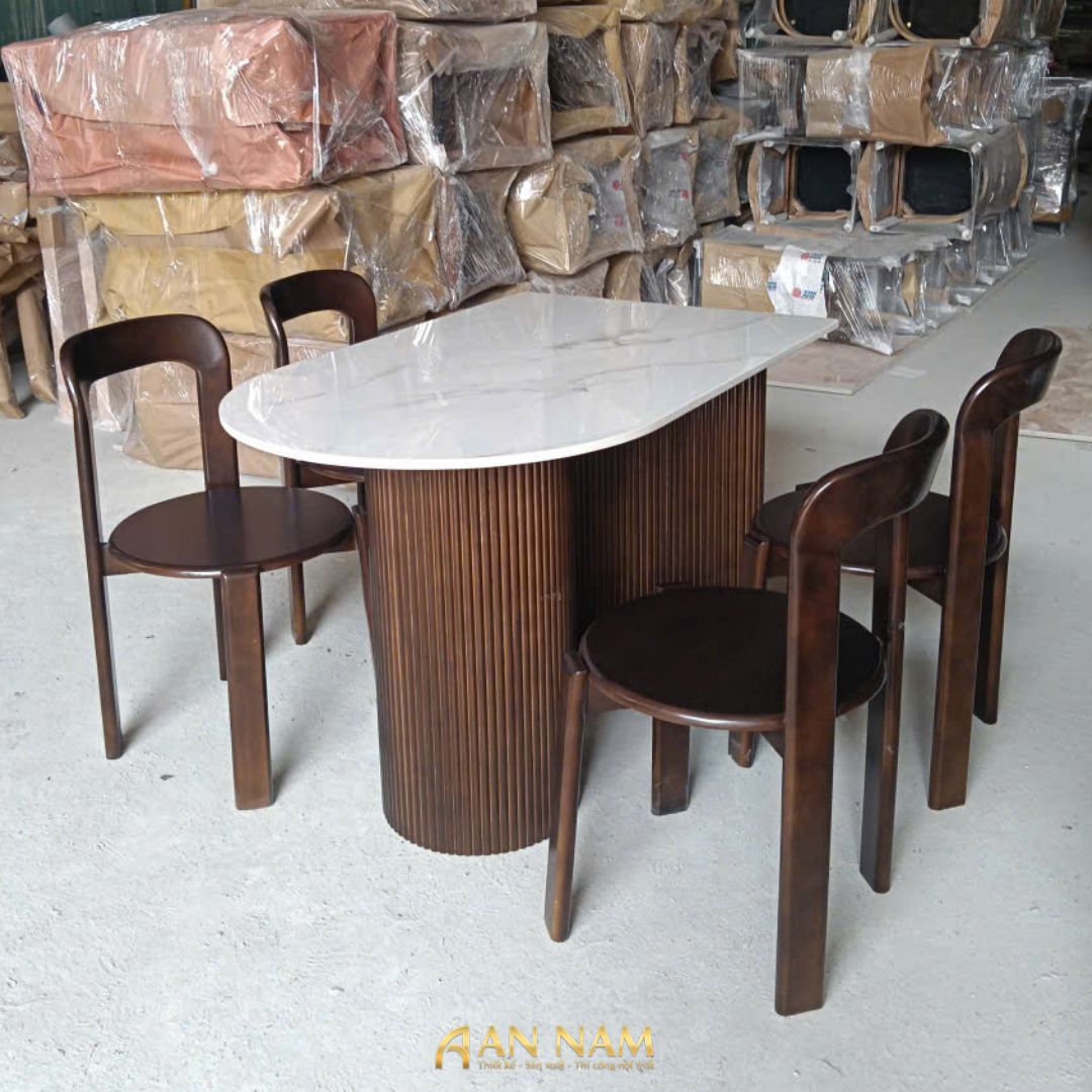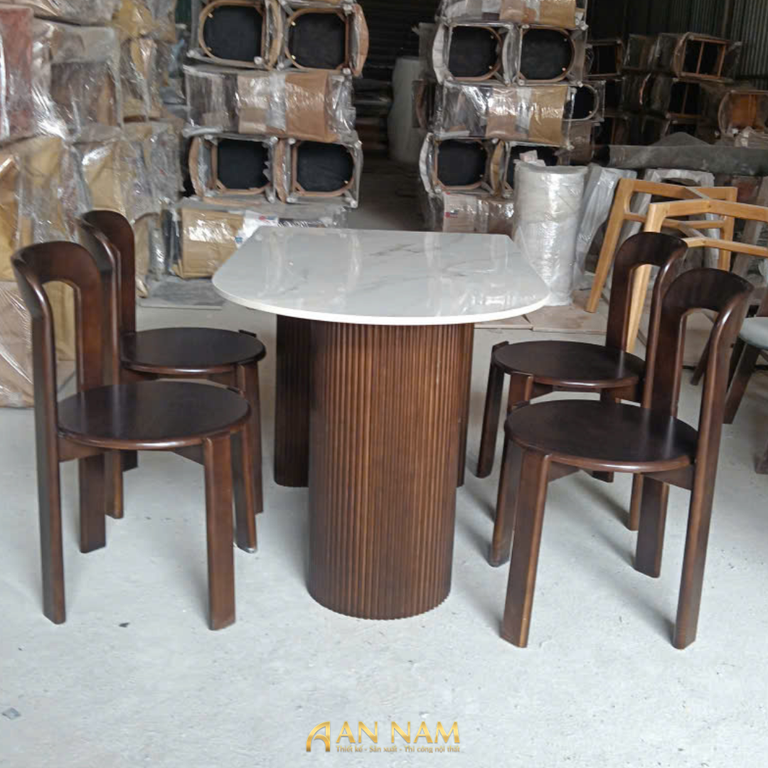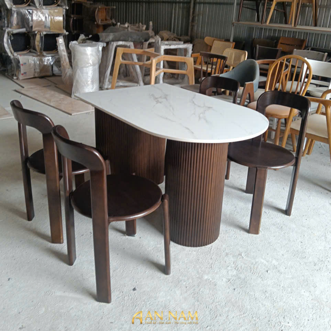 BỘ BÀN OVAL 1M2 MẶT ĐÁ CERAMIC + 4 GHẾ GENIE MẶT GỖ