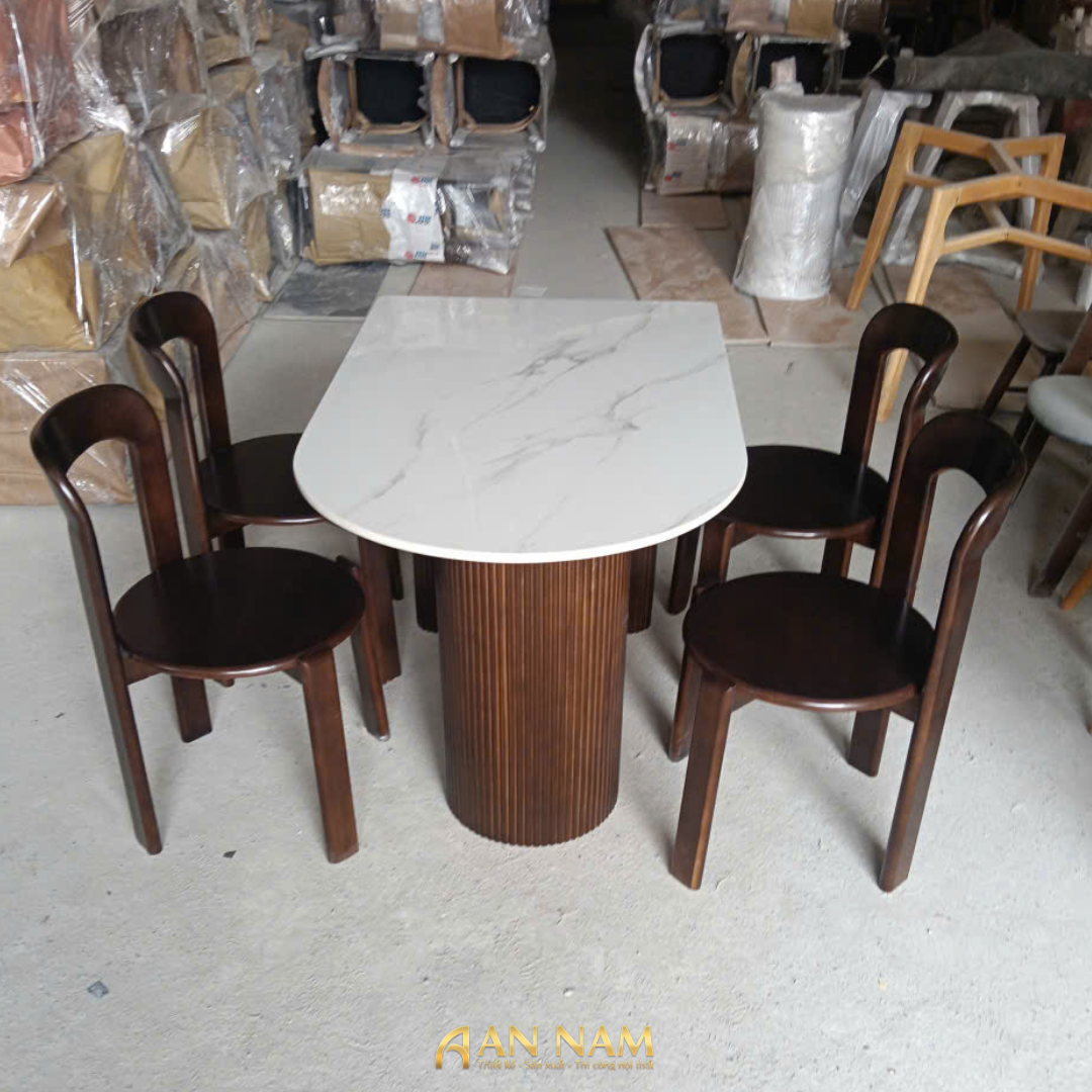 Bộ Bàn Oval 1m2 Mặt Đá Ceramic + 4 Ghế Genie